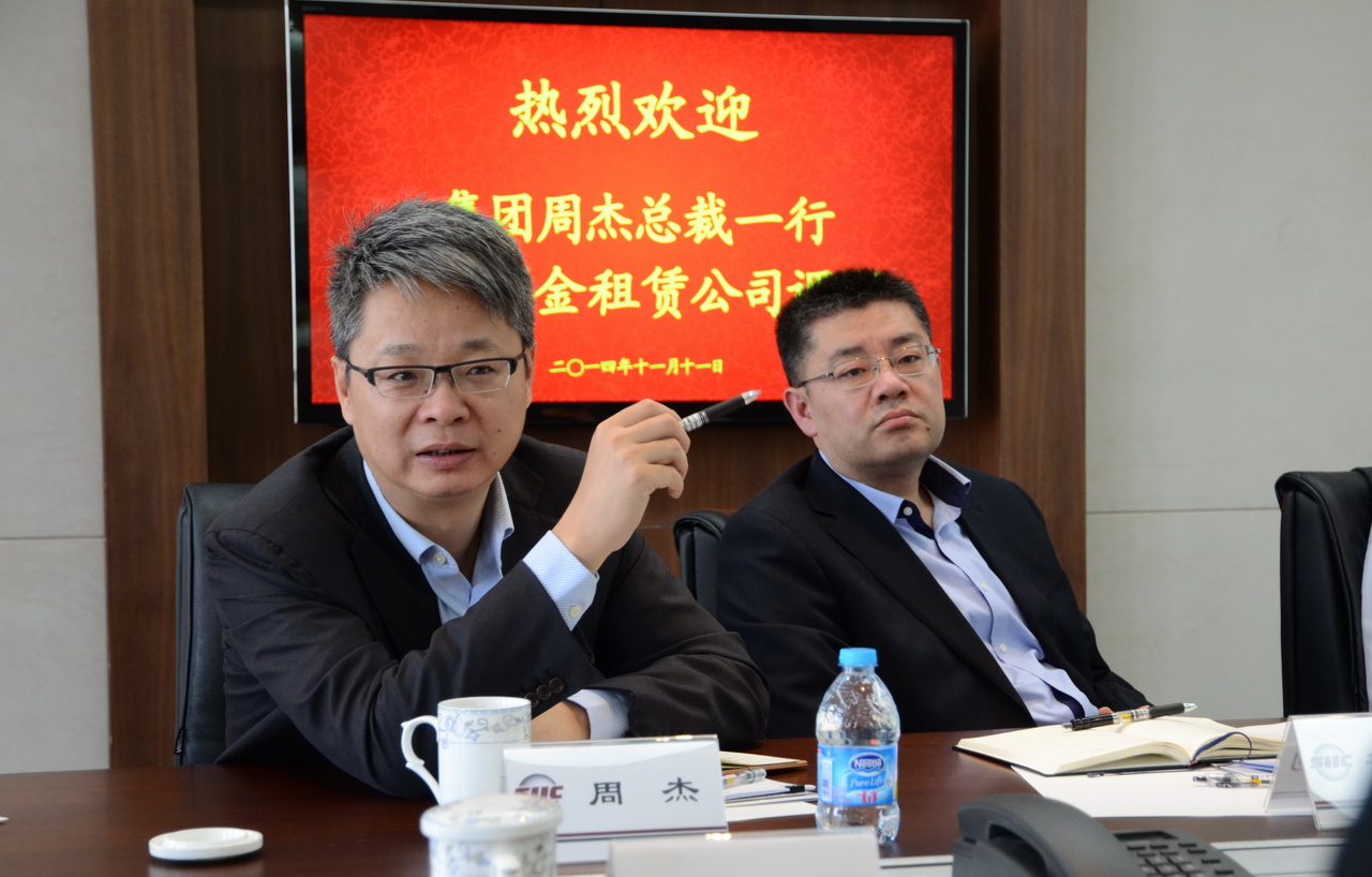 2014年11月11日,集團總裁周杰、助理總裁徐有利、投資管理部總經(jīng)理周予鼎、財務管理部副總經(jīng)理姜杰一行赴國金租賃調(diào)研,金服公司董事長劉益朋、總經(jīng)理江四海陪同調(diào)研。