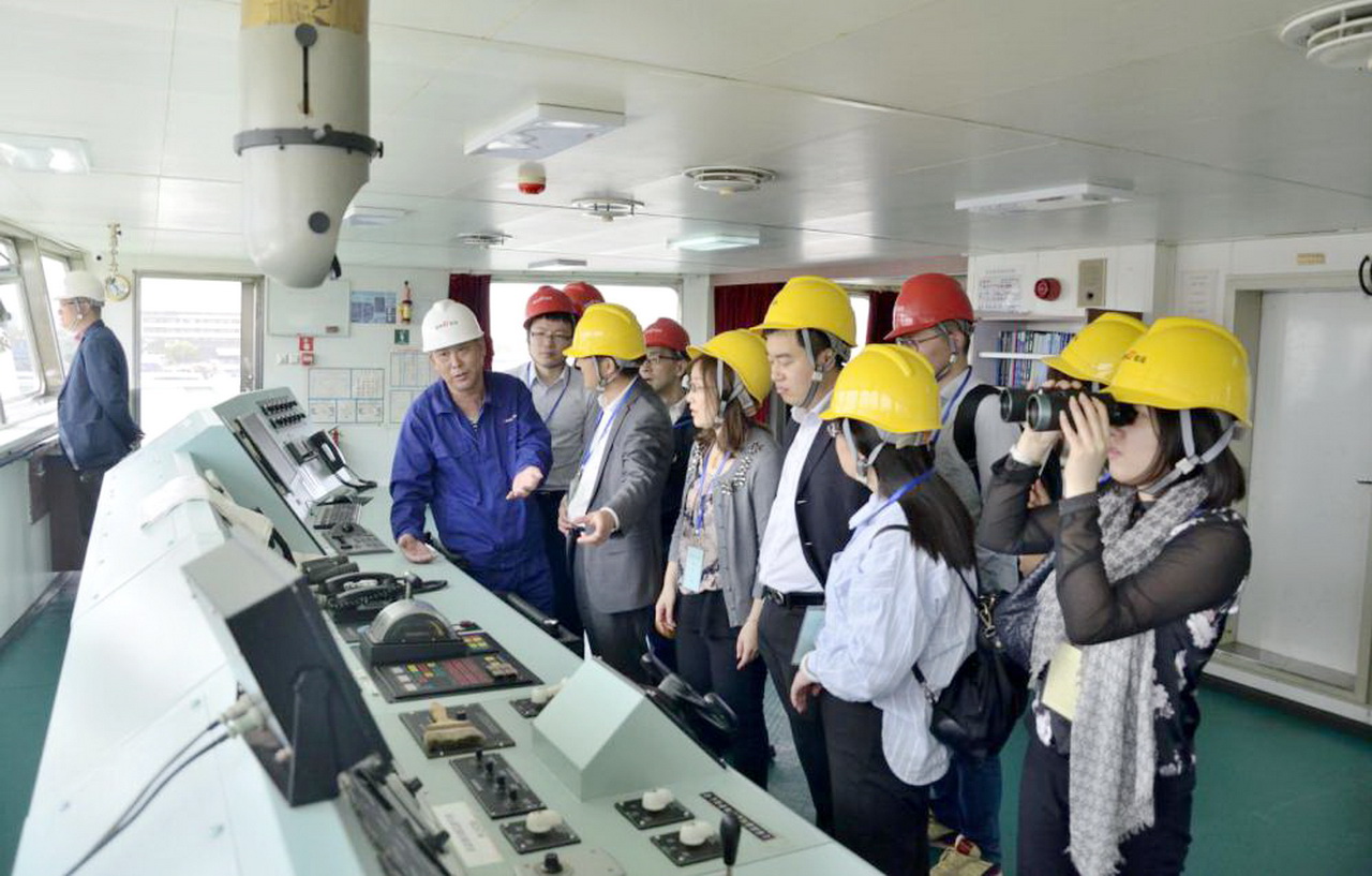 載重2萬噸的“建橋211”是公司于2014年購買的融資租賃標的物,航行于大連到廣州一線,是國內沿海主流運輸成品油船,為中石油和中石化運輸汽油和柴油,船舶為最新的排放2等級,航速可以達到13.5節(jié)。本次參加實地考察學習活動的黨員骨干有公司前、中、后臺各個部門的人員,大家在船長的帶領下登船,饒有興致的參觀了油船作業(yè)區(qū)、駕駛艙和機艙等主要區(qū)域,聽取對我國船舶工業(yè)的發(fā)展、油船現(xiàn)代化結構和裝備配備、以及航海安全等方面的的介紹。通過本次回訪交流活動,大家紛紛表示,對船舶和海洋工程領域有了深刻的了解,加深了對租后管理的深切認識。