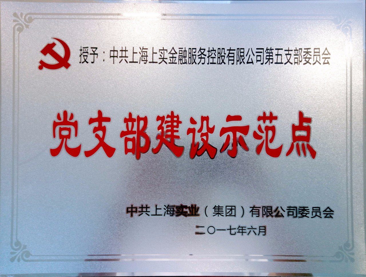 2017年7月4日,在中國共產(chǎn)黨成立96周年之際,中共上海上實金融服務(wù)控股有限公司第五支部分別榮膺中共上海市國有資產(chǎn)監(jiān)督管理委員會委員會和中共上海實業(yè)(集團(tuán))有限公司委員會“黨支部建設(shè)示范點(diǎn)”。