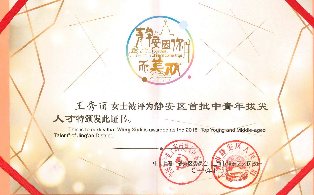 2018年12月28日,上海國(guó)金租賃有限公司副總經(jīng)理王秀麗在靜安區(qū)首批優(yōu)秀人才命名表彰大會(huì)被評(píng)為“靜安區(qū)首批中青年拔尖人才”。這是靜安區(qū)“撤二建一”后首次優(yōu)秀人才集中亮相,會(huì)上來自經(jīng)濟(jì)、社會(huì)、文化、教育、醫(yī)療等各個(gè)領(lǐng)域的優(yōu)秀人才代表獲表彰。靜安區(qū)委、區(qū)政府陸續(xù)出臺(tái)了一系列優(yōu)秀人才培養(yǎng)、激勵(lì)、保障服務(wù)政策,為人才營(yíng)造良好的發(fā)展環(huán)境。